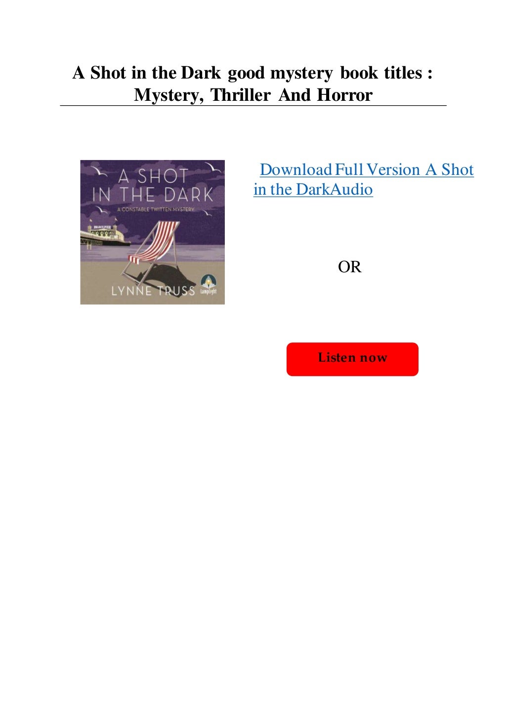 A Shot in the Dark: A Constable Twitten Mystery (Constable Twitten ... "A Shot in the Dark couples suspense with dark hilarity in the manner of the 1955 British black comedy film 'The Ladykillers,' thus delivering (just in time) the funniest crime novel of 2018." - Wall Street Journal "The mystery takes an amusing turn once the clever young Constable Peregrine Twitten starts second-guessing his superiors.