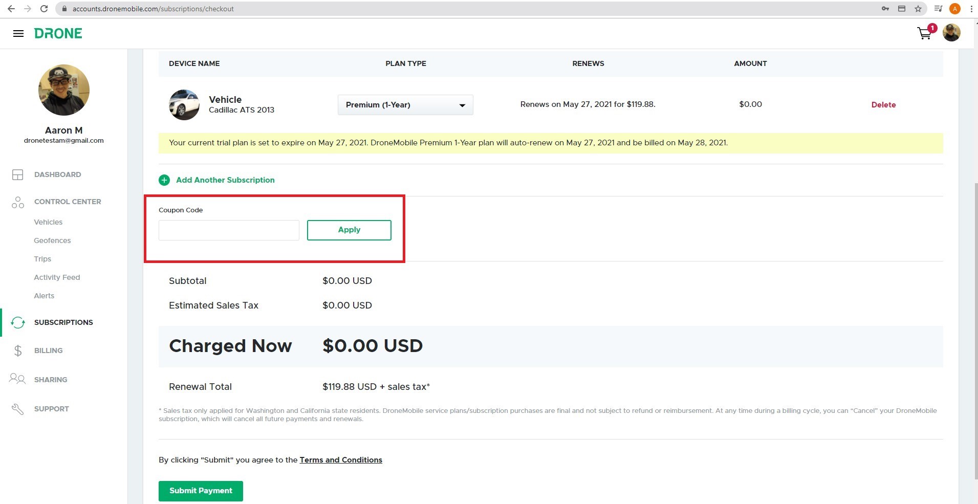 How to Purchase a DroneMobile Subscription - force.com To use your vehicle controls, car GPS tracking, and the advanced security features of your DroneMobile car alarm, you must first purchase a DroneMobile subscription! Once your free 30 trial has come to an end, follow the instructions in the video or article below to purchase your subscription.
